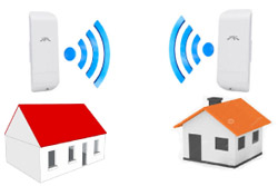 pour une distance maximum de 100 métrés, ou via un pont wifi
